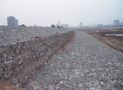 在水位比較高或者是抗洪搶險期,不適合造圍堰施工的情況下,可將擋墻下部的網(wǎng)墊改為網(wǎng)袋或大塊石,以營造比較有利的施工環(huán)境。